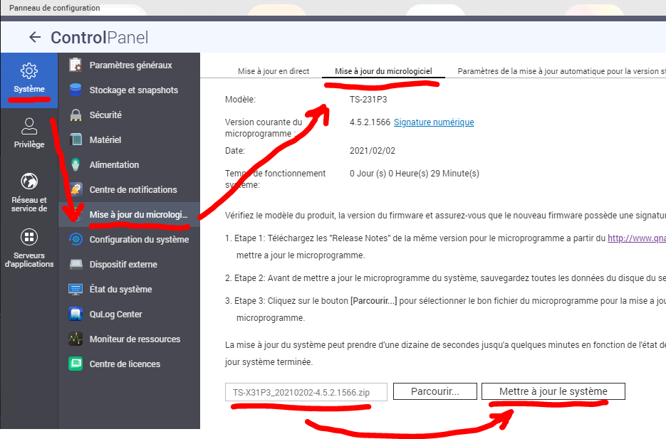 D'abord il faut télécharger le firmware sur https://www.qnap.com/fr-fr/download