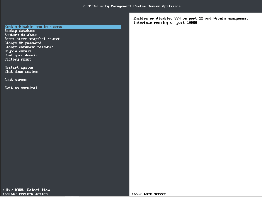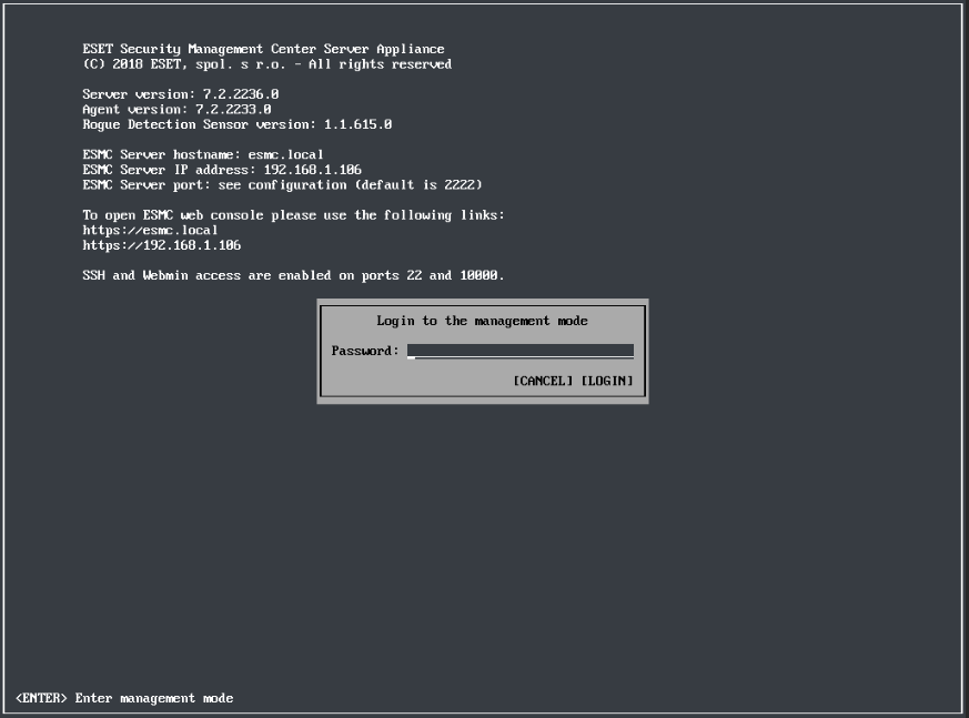ESMC : Connection a la console de gestion de la VA