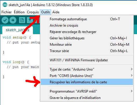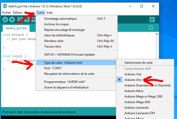 - Télécharger et installer le soft qui se trouve sur →https://www.arduino.cc/en/main/software
