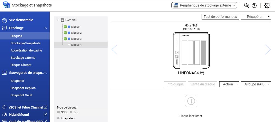 Message : [État du matériel] « Host: Disk 4 » : Connecté.
