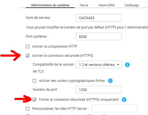 Pour plus de sécurité il est préférable de forcer les connexion à la page d'administration du NAS à utiliser le protocole HTTPS.
