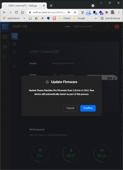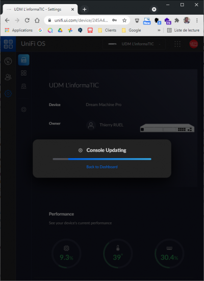 Rendez-vous sur https://unifi.ui.com/dashboard et séléctionnez l'UDM-PRO à mettre à jour.
