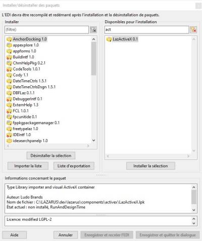 Dans un premier temps il faut que le paquet LazActiveX soit installé :