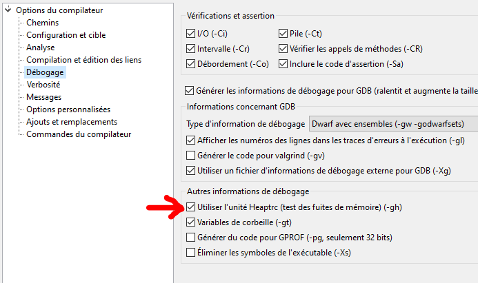 HeapTrc permet de détecter des éventuelles “fuites” de mémoire lors du débuggage.