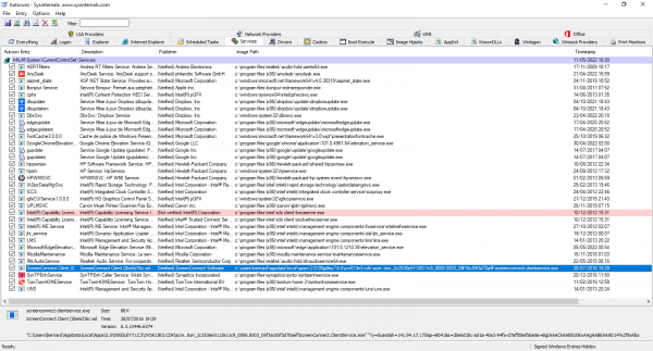 Avec Autoruns de Sysinternals on peut detecter le service : ScreenConnect Client