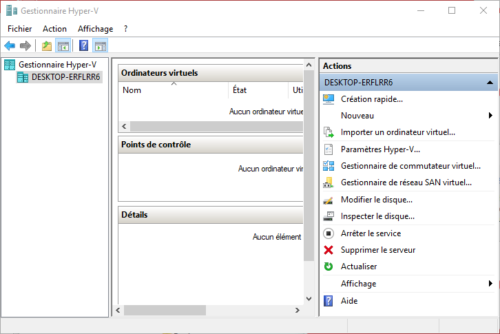 Dans le géstionnaire Hyper-V on clique sur création rapide